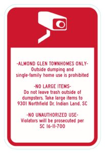 These signs would inform users about who is authorized to use the dumpsters, what items are permissible, and where to dispose of large items.